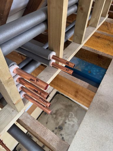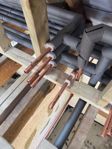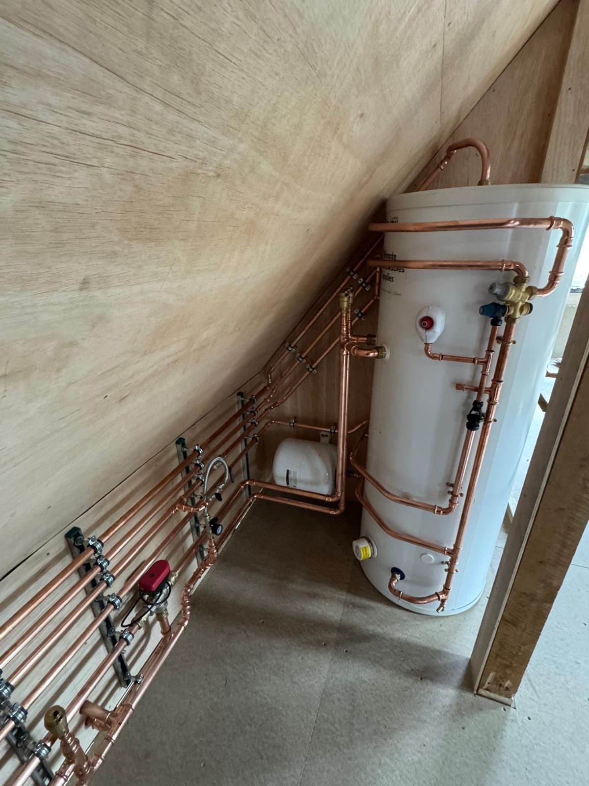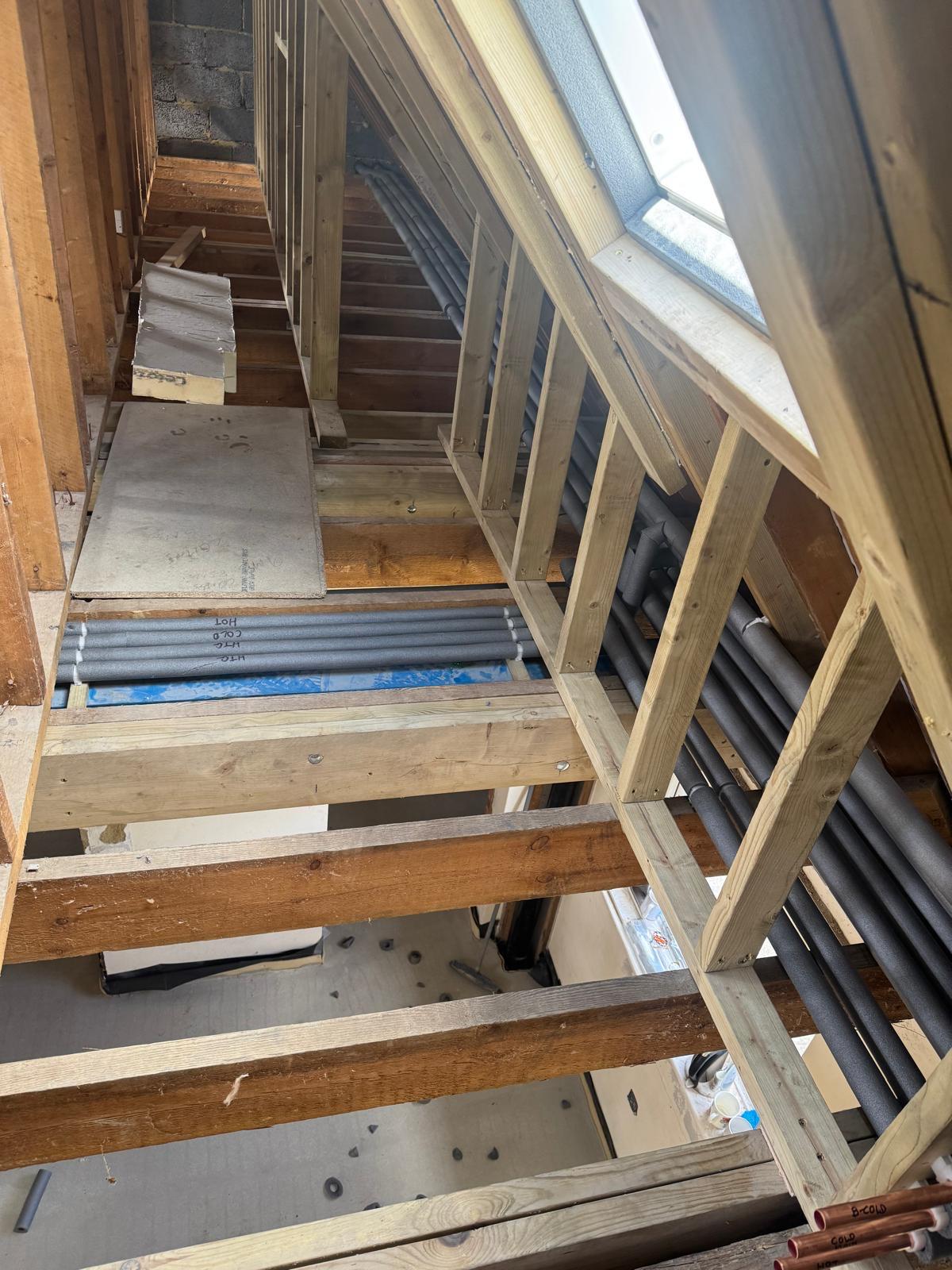 We installed a huge amount of insulation in the walls and ceiling whilst putting in the extensive pipework to connect the new pressurised hot water cylinder to the system.